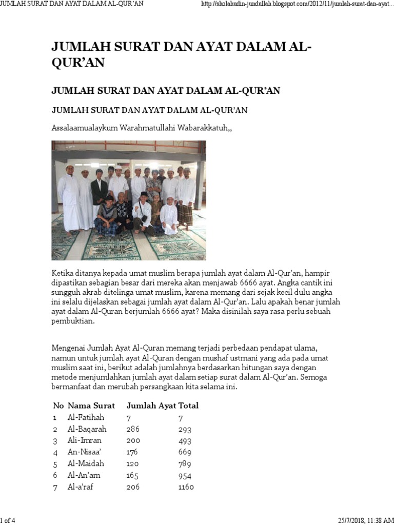 Σa = jumlah ayat yang menggunakan kata yang sama. Sedangkan jumlah ayatnya, beberapa ulama memiliki perbedaan cara dalam menghitungnya. Kitab berisi 114 surat ini disusun dalam 30 juz. Alquran, kitab suci umat islam merupakan sebuah mukjizat nabi muhammad saw. Lantas, berapa surat dalam al quran dan jumlah ayatnya?